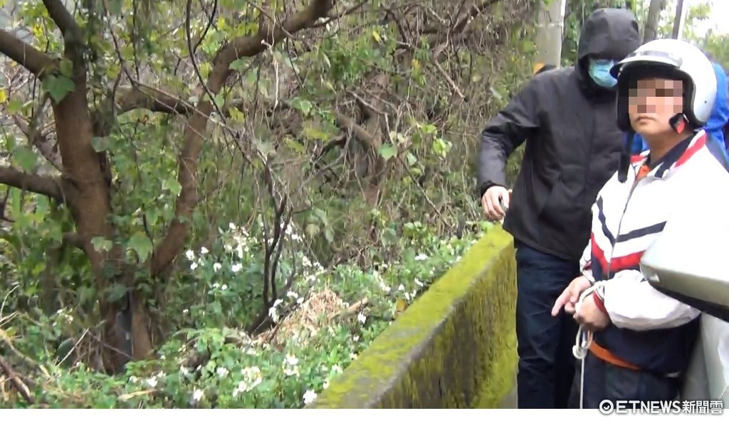 ▲李男在警方的陪同下前往棄屍現場,還原當時情況。(圖/記者柳名耕翻攝)