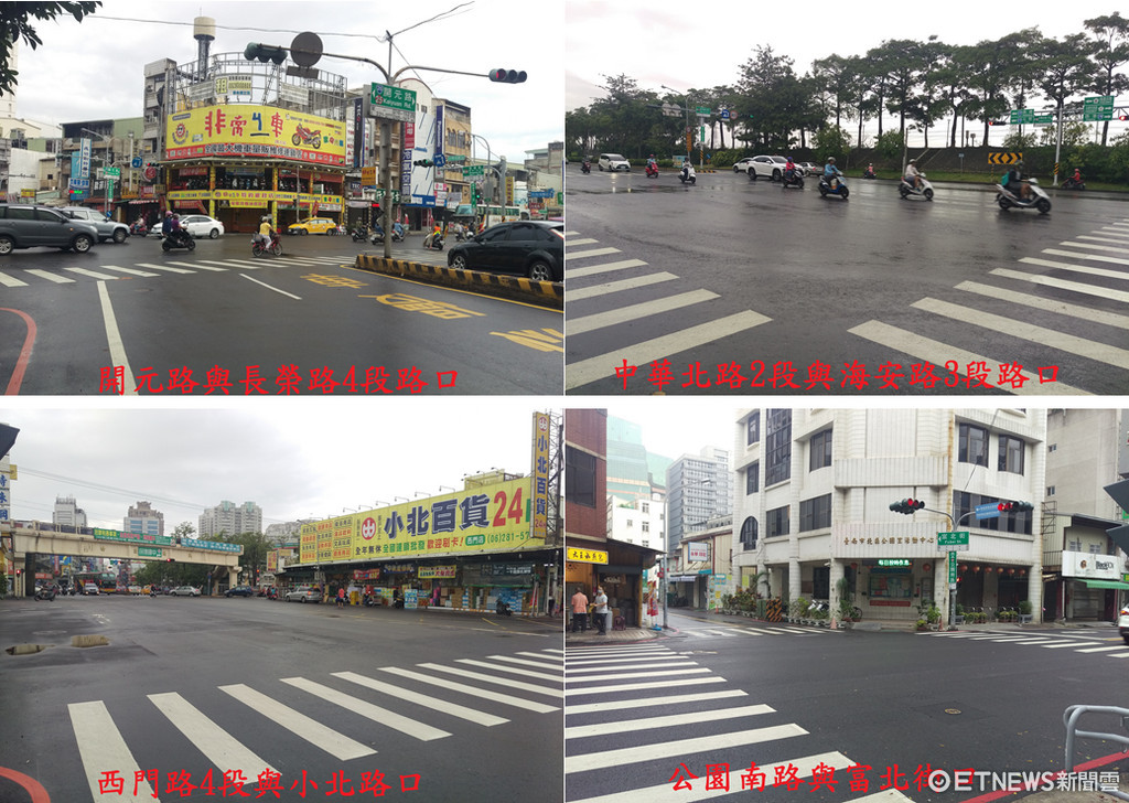 二、依發生路口統計:(由多至少):1、開元路與長榮路4段路口;2、中華北路1段與海安路3段路口;3、西門路4段與小北路口;4、公園南路與富北街口。