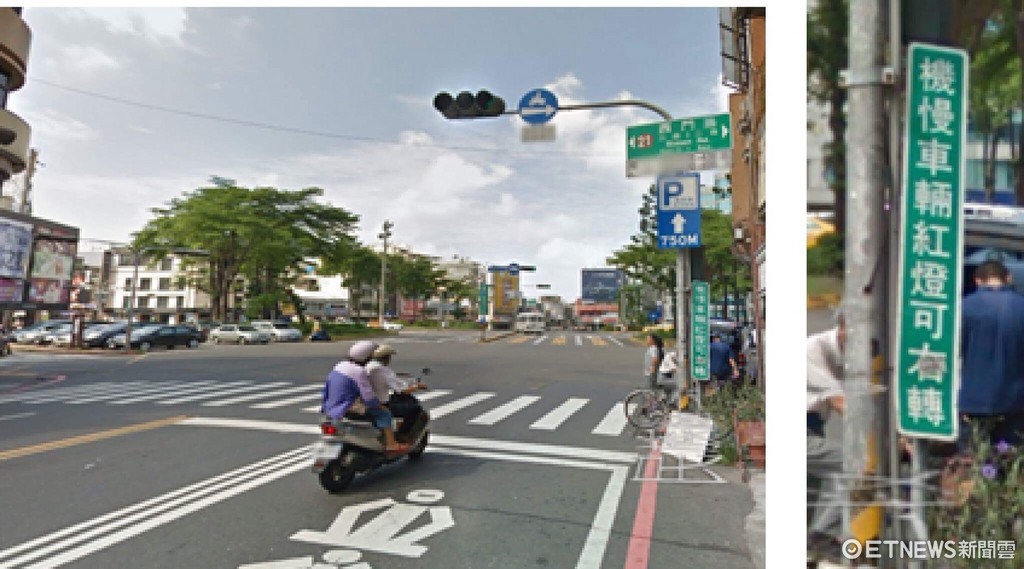 市警交通大隊指出:一、號誌化路口,原則上是禁止紅燈右轉,僅有在特定路口,例外設立告示牌或以號誌燈號,允許紅燈右轉。台南市允許紅燈右轉路口,舉例有西門路與民族路口、後甲圓環等路口之機(慢)車道,係於路口設置告示牌面「機慢車輛紅燈可右轉」。民眾若貿然紅燈右轉,橫向車流駕駛人不易查覺,便很容易發生碰撞。