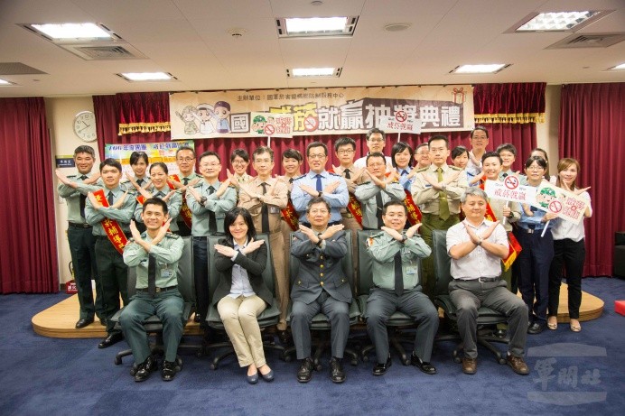 國防部軍醫局19日舉辦國軍「106年度戒菸就贏比賽」抽獎活動,由軍醫局副局長陳少將、國民健康署研究員劉玉娟,公開抽出幸運獲獎官兵,肯定他們戒菸的努力。