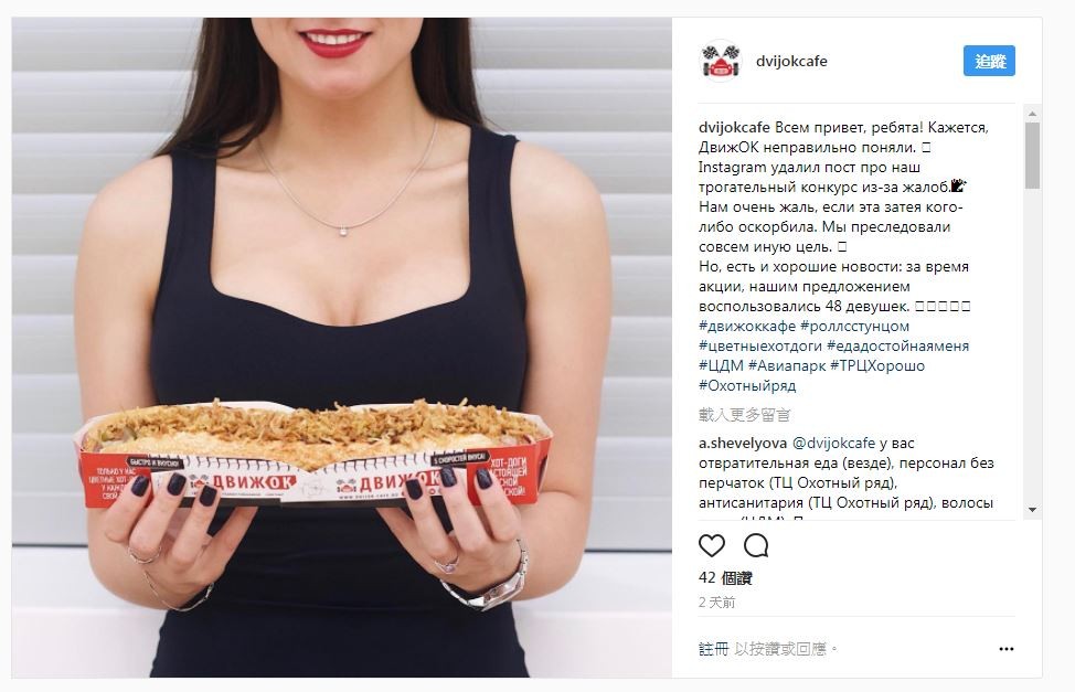 ▲俄羅斯速食店新優惠,胸部愈大,折扣愈多。(圖/翻攝自dvijokcafe IG帳號,下同)
