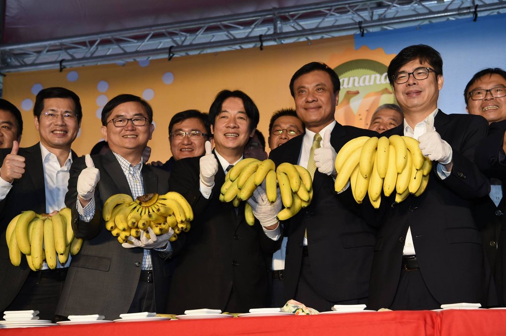 賴清德表示,今年香蕉豐收,供需失衡,導致價格下降,雖然在農委會努力下,價格稍稍回穩,但與理想目標距離仍遠,希望大家能一起吃香蕉,救蕉農。