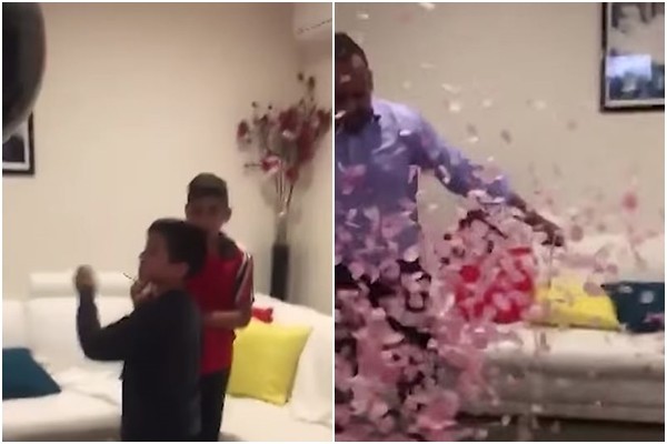 迎接家庭新成員是件開心的事,澳洲一位爸爸為了給家裡3個小男孩一個驚喜,將代表女生的粉紅色紙屑塞進氣球裡,當3兄弟刺破氣球後,看到粉紅色紙屑緩緩飄下,立刻高興的大吼大叫,直呼「我們要有妹妹了!」興奮的神情也感染不少網友。