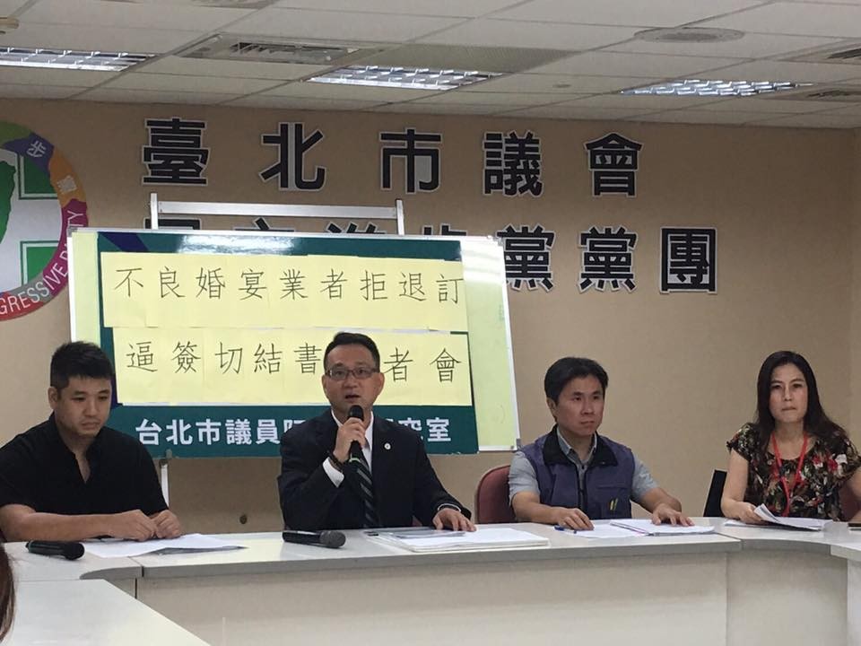 結婚宴客竟爆出消費糾紛!台北市議員阮昭雄20日召開記者會,陳情人控訴合乎合約規定的情況下解約,知名酒店維多麗亞竟拒絕退還訂金,還逼陳情人簽切結書延期在一年內使用,不簽視為未取消。此外,阮昭雄還發現,維多麗亞酒店前科累累,類似爭議層出不窮,批評根本是「吃人夠夠」。