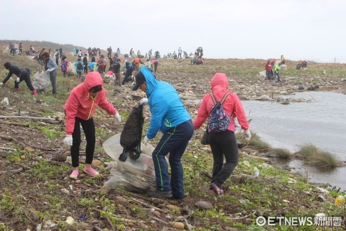 ▲民眾攜手維護海灘環境。(圖/記者謝侑霖翻攝,下同。)
