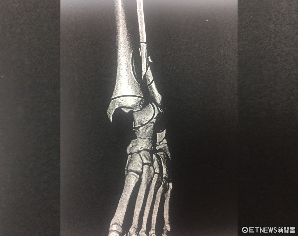 ▲林姓男子指稱自己遭斧刃腳偷襲,導致腳骨斷裂。(圖/記者陳豐德翻攝)