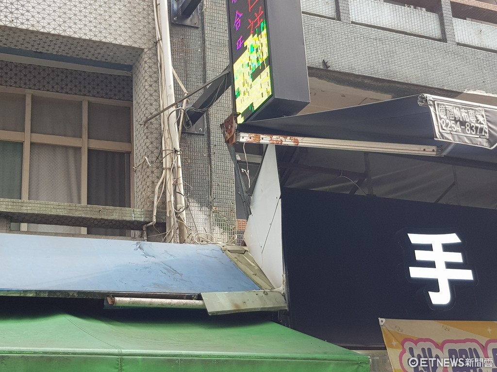▼ 吸毒男子攀在一樓雨遮外高聲呼喊「有人要害我」。(圖/記者陳豐德攝)