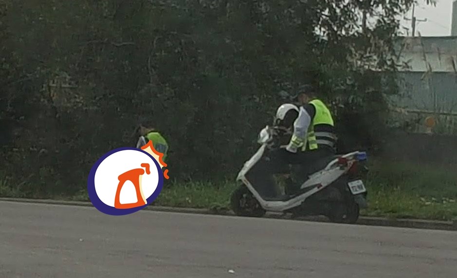 王姓男網友24日下午在「爆廢公社」貼文,分享一張路邊拍下的照片,只見2名警察身穿制服、騎著警用機車,似是在執行巡邏勤務。不久,騎車員警將機車停在路邊、脫下安全帽等待,坐在後座的警察則下車走入馬路旁草叢中,側著身子疑似正在小便。