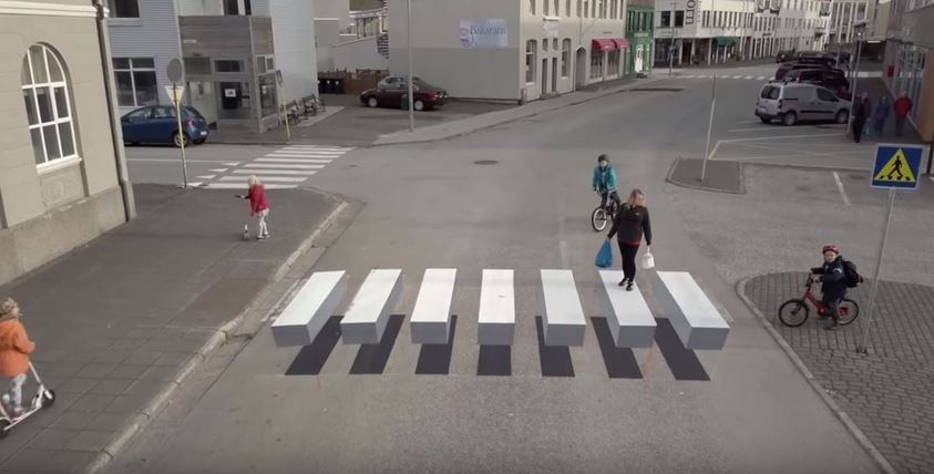 根據《每日郵報》報導,冰島西峽灣區伊薩菲厄澤(Ísafjörður)環保部長特萊拉(Ralf Trylla)指出,伊薩菲厄澤鎮市中心的建築老舊、街道狹窄,為了讓2千多名居民有更舒適的生活環境,因此首創3D斑馬線,讓駕駛誤以為馬路上有東西,進而達到減速慢行的目的。