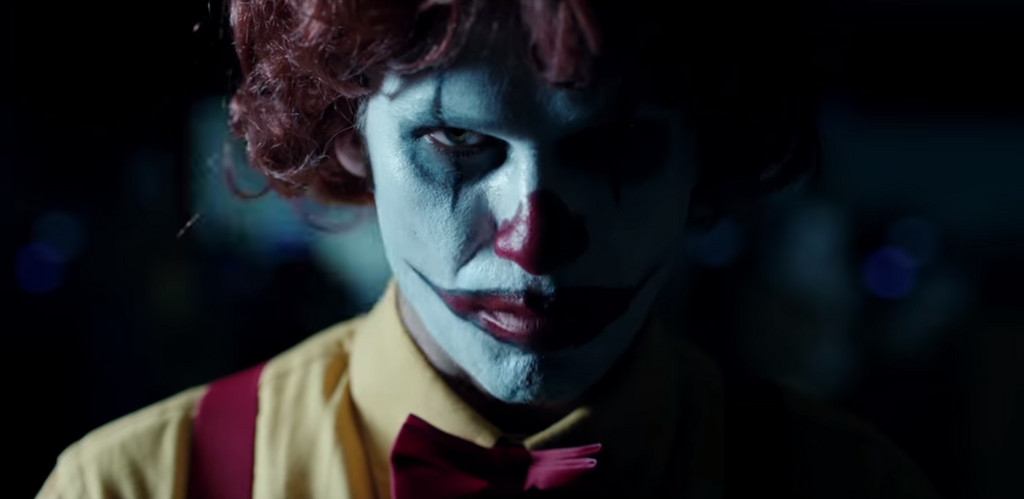 覺得氣氛詭異的少年加速逃離現場,卻發現一路上充滿了小丑打扮的人,並且全部追著他跑,他嚇得一路狂飆,最後躲進了漢堡王的店裡,一關上門卻發現早就有一大群小丑在等著他。站在中間的偽麥當勞叔叔隨著忽明忽暗的燈光,瞬間移動到少年面前,整張臉充滿螢幕的他冷冷地說了一句,「我要我的華堡」。