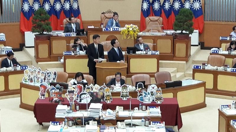 黨團今天在議場把吉祥物的人形立牌一字排開,但多半沒什麼人喊得出名堂,詳細一數,光水利局就有超過12隻。
