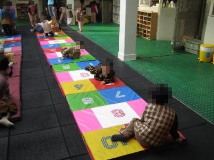 ▲小朋友們在地上匍匐前進。(圖/翻攝自愛伯特幼兒園官網)