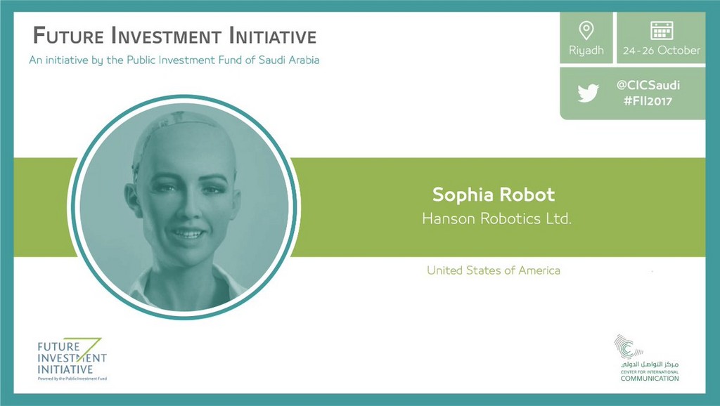 沙烏地阿拉伯主權財富基金(Public Investment Fund, PIF)在25日晚間的投資大會上宣布,將賦予一「名」女性機器人蘇菲亞(Sophia)沙烏地阿拉伯國籍,這也是史上首位擁有公民身分的機器人。