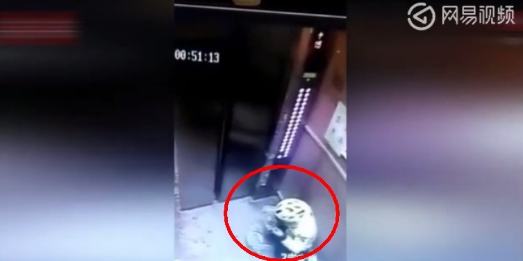 電梯監視器畫面顯示,身穿「美團」黃色制服的外送員進入電梯後蹲在一角,打開餐點就一陣低頭猛吃,又將口中食物吐回餐盒,電梯到達後則故作鎮定走出門,繼續派送給客人餐點。