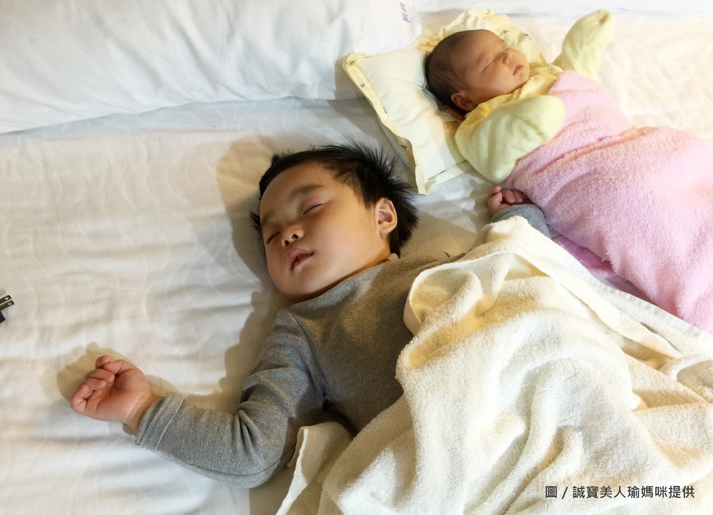 ▲寶貝睡覺時容易踢被,最好在肚子蓋上一件小布布避免著涼喔!(圖/誠寶美人瑜媽咪提供)