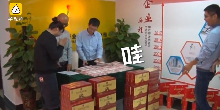 ▲桌上擺著獎金。(圖/翻攝自梨視頻)
