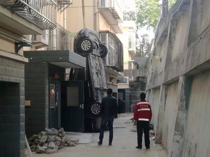 另一戶鄰居也受了不少驚嚇,他表示,自己本來在床上玩手機,突然聽到一聲巨響,以為地震了,跑出來一看,一輛車子「倒栽蔥」靠在別人家的窗戶上,「車子裡面有個女駕駛,應該是樓上的車子,不知道為什麼開了下來。」