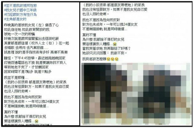 她強調,自己並非那種認為自己小孩很乖,都是朋友帶壞她的那種家長,「我沒有怪罪對方,如果不是我女兒自己愛,也沒人撈得走阿;我也不是因為性向而反對,對方也是未成年,1年可以換24個女友,不是無縫接軌就是同時幾個,真的不懂...為什麼我都捨不得打的女兒,要這樣讓別人糟蹋。」