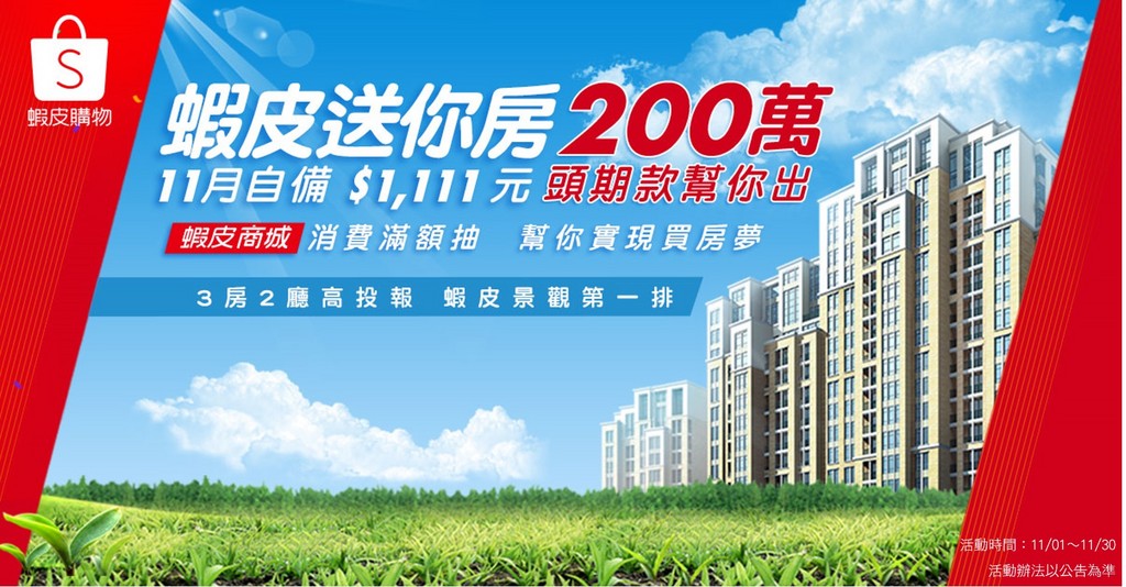 ▲挑戰網購雙11,蝦皮購物推出「蝦皮送你房,200萬頭期款幫你出」活動。(圖/蝦皮購物提供)