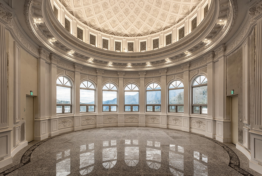 主大廳挑高而線條層次交錯,簡明有序,優雅交格;立於圓屋頂下,則仿若處身蒼芎之昂,仰望雕樑畫棟,在純色背景映襯中,更顯張力與細緻,藝術之美不言而喻;可容納兩百餘人的國際會議廳成為師生的最愛,寬敞舒適且設備先進,提供專題研討、國際交流、學術演講的專業場地。