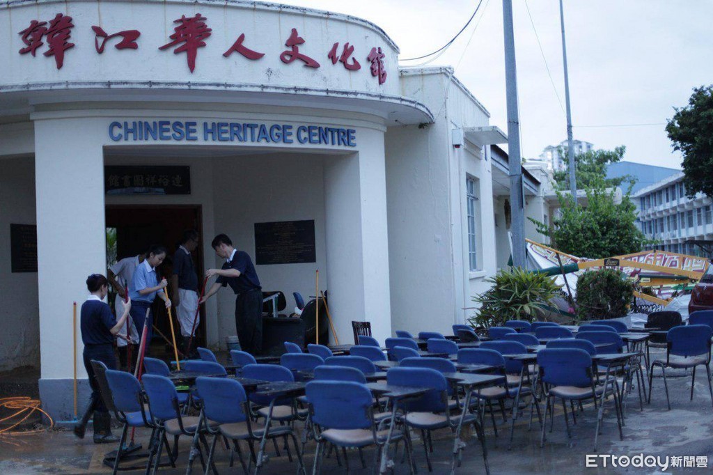 慈濟志工更前往淹水的韓江中小學、韓江大學學院進行清掃,從白天清掃到夜晚,為了就是讓學生在6日可以照常上課。地勢低窪的韓江大學學院經常淹水,院長馬國輝博士表示事先都有進行預防措施,但是沒想到這次災情更嚴重;韓江大學學院林俊偉主任表示,過去只是淹到腳,這次卻淹進了辦公室,還好有慈濟來幫忙,很感謝慈濟。