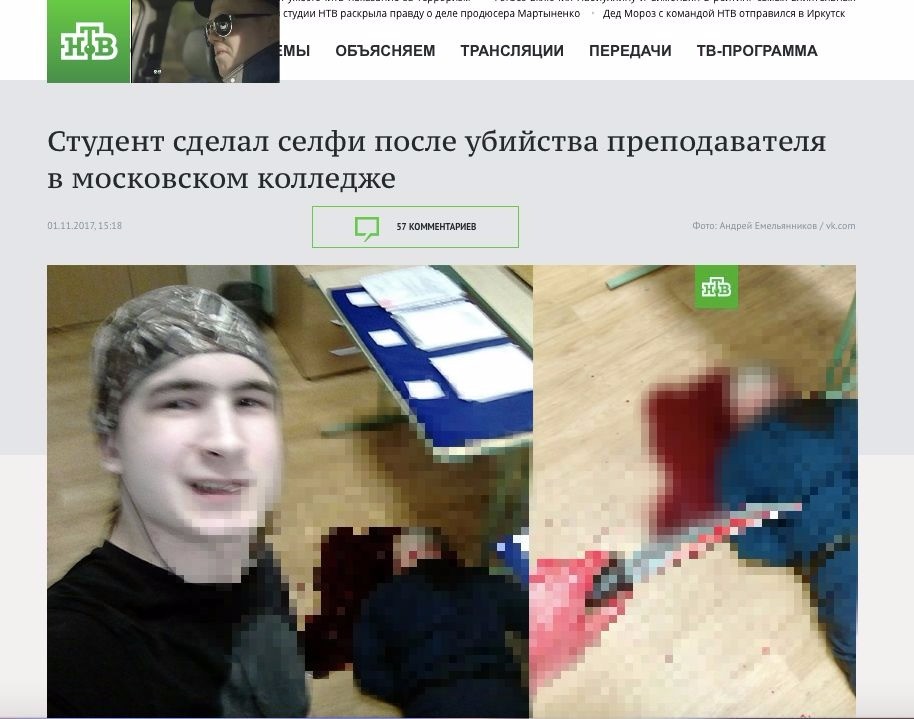 就讀莫斯科一間理工學院的學生安德烈(Andrei E),1日時在學校教室裡殺害44歲的教授後,竟拿著沾了血的刀子跟屍體微笑合照,並將照片上傳到俄羅斯著名社交軟體「VKontakte」,震驚許多當地居民。據悉,安德烈在殺害老師跟自拍之後,也在同一間教室裡自殺身亡。