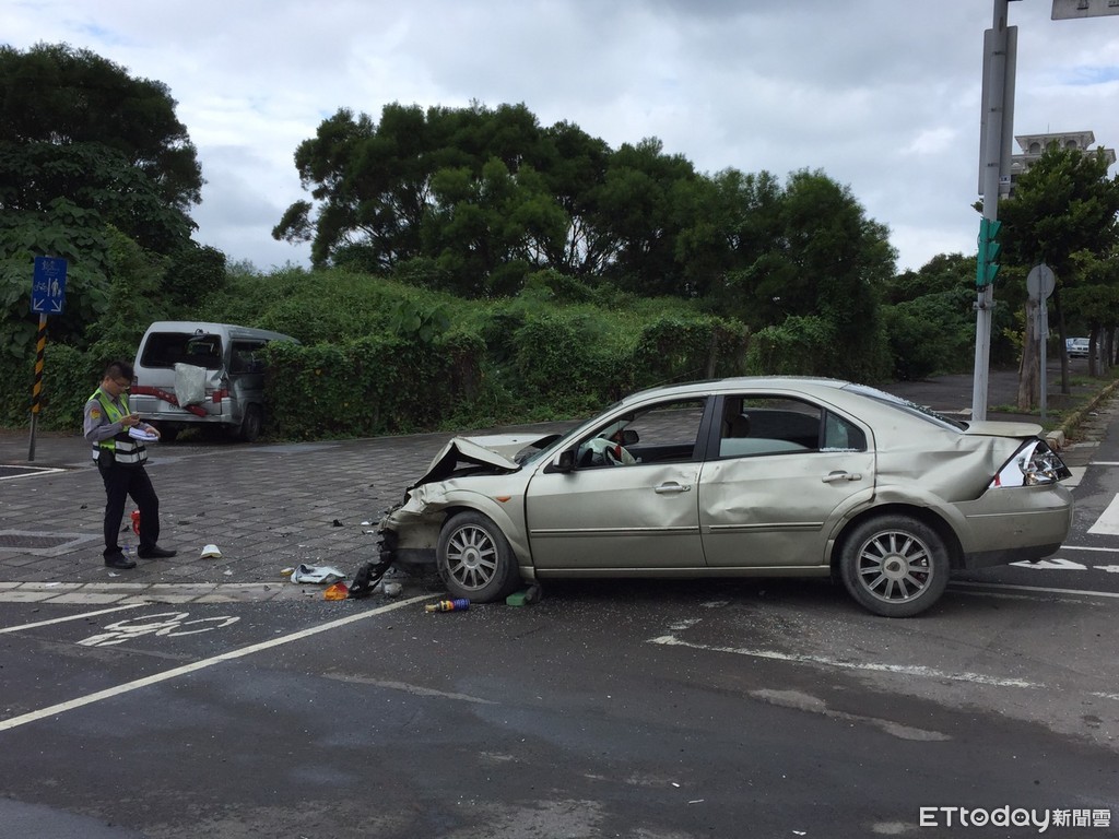 ▲轎車與廂型車橫越路口時發生擦撞。(圖/記者陳豐德翻攝)