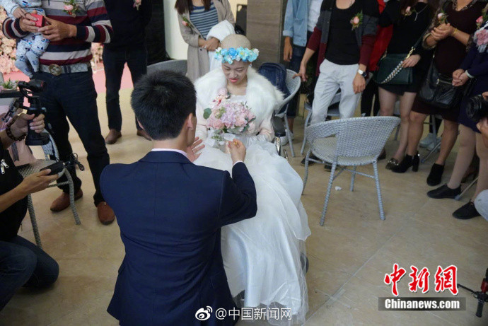▲萍萍雖然沒了頭髮,但仍是最美的新娘。