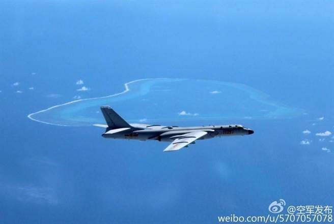 ▲解放軍轟-6K巡視黃岩島。(圖/取自空軍發布微博)
