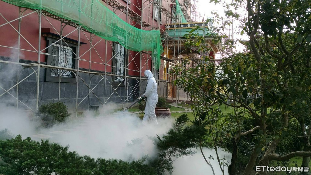 ▲疾病管制署於11月1日確診台南市第16例境外移入病例,個案為印度籍人士,台南市衛生局進行化學消毒防護作業。(圖/衛生局提供)
