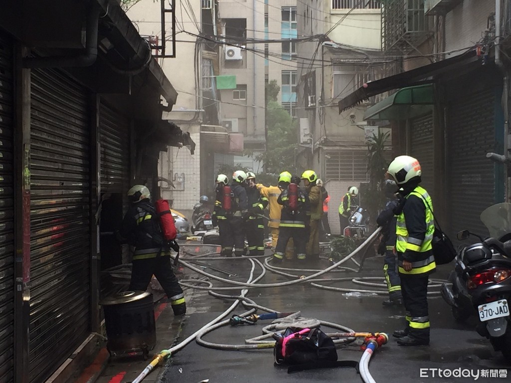 ▲台北市民權東路發生大火,警消趕往現場搶救中。(圖/記者張曼蘋攝)