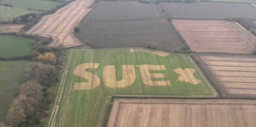 據《衛報》報導,格雷厄姆表示,他有一些剩餘的化學物質,便利用GPS拖拉機在草地上「做畫」,看能不能讓老婆開心些。然而在兒子捕捉畫面前,國家警察航空服務(NPAS)就先在推特貼文詢問,草地上的Sue到底是何方神聖?