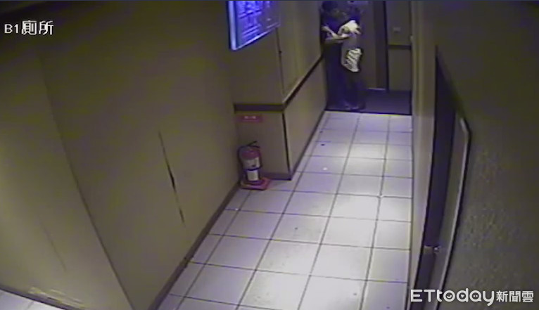 ▲情侶在廁所走道口忘情喇舌,因故與另派顧客發生推擠衝突,警到場噴辣椒水制止。(圖/記者林煒傑翻攝)