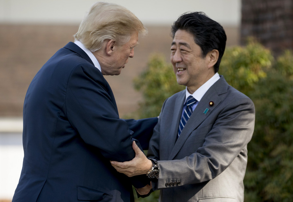 美國總統川普5日上午抵達「亞洲行」的首站日本,與首相安倍晉三會面。他稱讚日本是「美國的珍貴夥伴,也是重要盟友。」兩人也一同在白色帽子上簽名,這些帽子上以燙金字體寫著「唐納與晉三讓美日同盟更加偉大」(Donald & Shinzo Make Alliance Even Greater),不僅向全世界展現兩國堅固的盟誼,也呼應川普競選時的口號「讓美國再次偉大」(Make America Great Again)。此外,安倍至少兩次公開稱呼川普為「唐納」,展現兩人的親密關係。