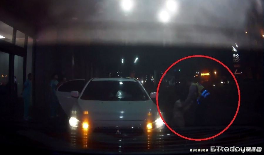 ▲警車開路協助夫婦抵達醫院,跟在車後的媽媽抱著兒子,下車時情緒潰堤,當場下跪叩謝警方救命恩情,隨後才進入急診室。(圖/翻攝畫面)