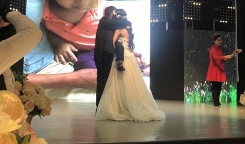 1日當天,投影幕播放鮑鮑出生至今的照片,鮑鮑穿上西裝、領口也別上紅色蝴蝶結,帥氣出場,媽媽穿著白色婚紗走向台前,鮑鮑突然哭喊「爸爸、媽媽」,一家三口在台上相擁而泣,讓台下的賓客們也紛紛濕了眼眶。他說,「媽媽是這世界上最美麗的人,我要永遠跟爸爸、媽媽在一起。」