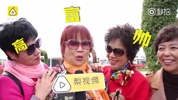 ▲57歲的阿姨在影片中大喊,「我要高富帥!」(圖/翻攝自梨視頻,下同)