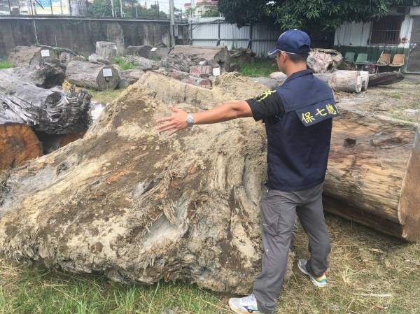 保七總隊第五大隊東勢分隊員警日前巡山時,發現1輛小貨車形跡可疑,跟監至1處砂石車停車場時上前盤查,車上2男卻棄車逃逸,警方擴大搜索,發現附近藏匿了17根大樹徑的扁柏及肖楠,市價超過200萬元,且警方在逃逸嫌犯車上找到1支手機,循線逮捕停車場管理員與吳姓、田姓等3嫌,3人坦承警方扣案的17根珍貴樹材,係在河床撿拾竊取。