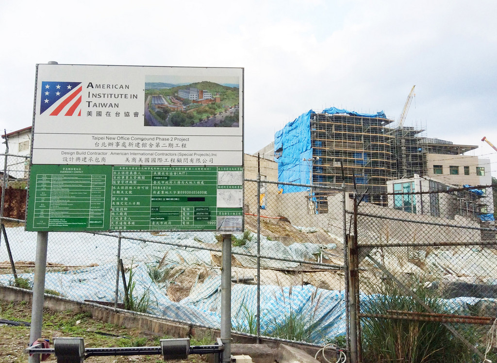 ▲美國在台協會AIT台北辦事處新館工地,位於內湖區金湖路上(攝於2017年2月)。(圖/翻攝自維基百科)