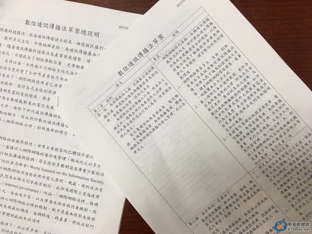 NCC在去年底公布「數位通訊傳播法」草案,這項草案目前正在行政院審議,待通過就送立法院審查。NCC主委詹婷怡當時表示,在「數位通訊傳播法」草案中,規範建議政府透過建立公眾諮詢和參與機制,落實開放政府的理念,建構網際網路的基本規範,包括個人資訊隱私、通訊秘密、智慧財產保護、個人資料安全和消費者保護等相關法規;在「網際網路治理」精神的架構下,強化服務提供者與使用者的平等關係,確保服務資訊能充分揭露,消費者權力能有所救濟;整體來說,這項草案是民法、刑法等法律的特別法,也就是把規範實體世界的法律延伸到網路世界,網路世界的行為和言論都要接受法律約束。