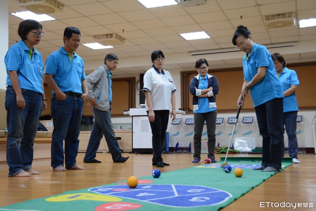 ▲慈濟科技大學針對平均學生年齡超過55歲的樂齡大學阿公阿嬤,推出多元豐富的體育課,有眾樂樂的槌球、太極柔力球,以及簡易的健康操、手指運動,讓老人家能隨時隨地「動」一下。(圖/慈濟科技大學提供 下同)