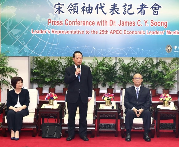APEC代表團今天出發,宋楚瑜在登機前發表簡單談話,強調一定會在這次會議中讓世界看見台灣,以平等互惠方式促成多邊或雙邊的合作,讓大家看見台灣的努力,不負國人的期待。