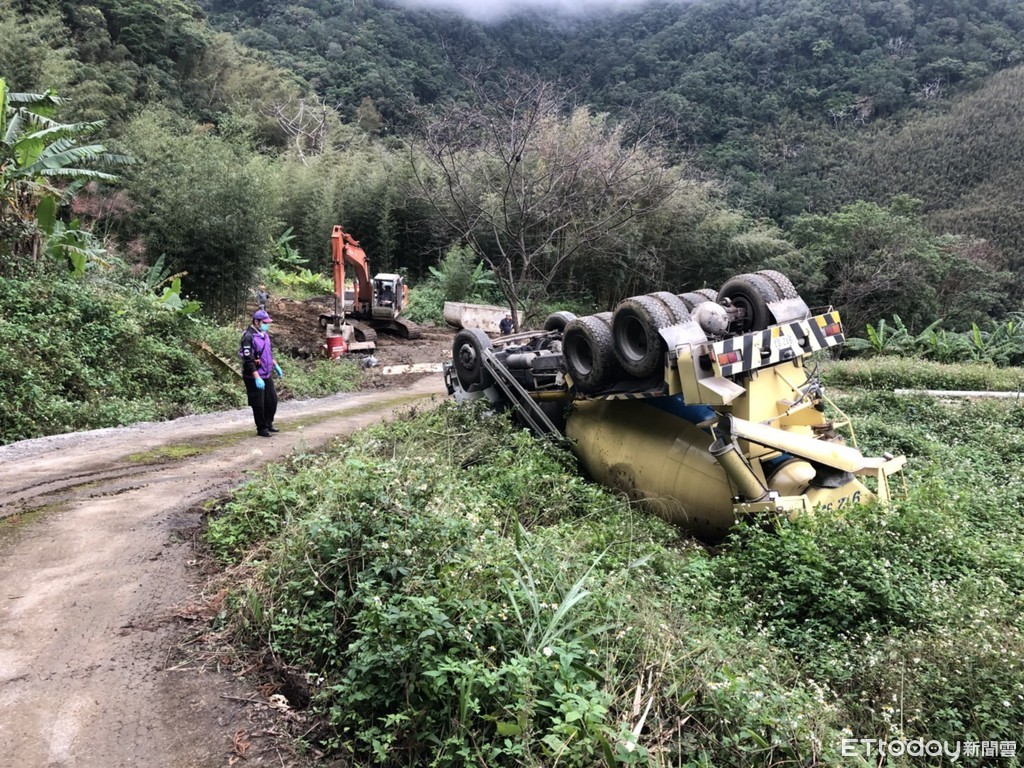 桃園市復興區奎輝里嘎色鬧工地今天下午2時許發生一起工安意外,警消人員接獲報案,現場進行水土保持工程時,一輛預拌混泥車因不明原因整車翻覆,一名男性司機受困車內,意識不清沒有呼吸心跳,立即出動消防車4輛、救護車1輛,消防人員9名到場搶救,經初步了解,現場為水保局工程,詳細情況有待進一步釐清。