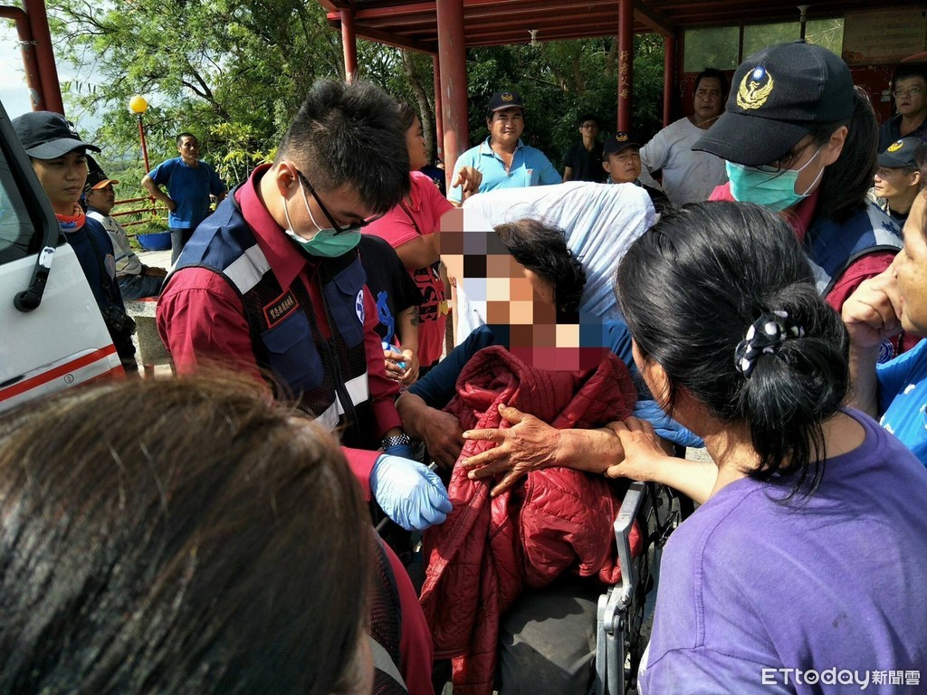▲朱阿嬤在山區迷途3日,獲救時幾乎已經全身脫力,且四肢多處擦傷,所幸並無生命危險。(圖/記者莊智勝翻攝)