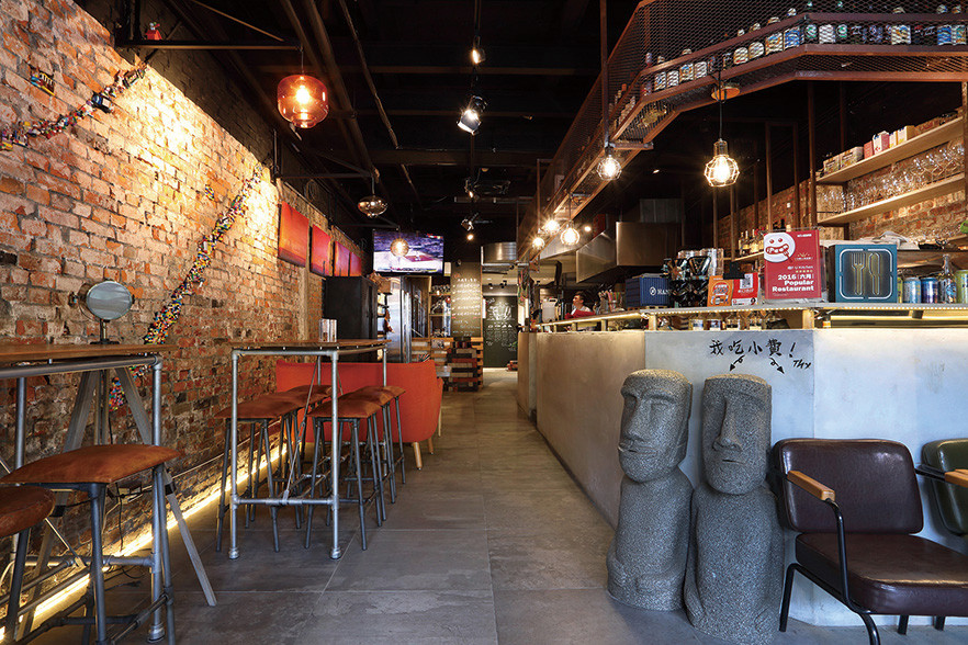 一樓的舊磚牆呼應德國藝術家Jan Vormann 發起之「樂高修復市容計畫Dispatchwork」,以繽紛的樂高積木修補縫隙,新舊色彩與材質間產生既衝突又和諧的美感;整體氛圍輕鬆自在充滿活力,高腳吧檯座位方便單點飲料或餐前飲酒的客人使用,改裝後包裝設置於一樓,更方便團體客人聚餐或舉辦活動。