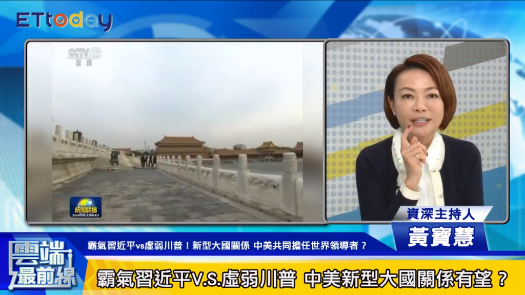 川普亞洲行第三站抵達北京,除了與習近平一同用晚宴、看京劇、參觀紫禁城之外,9日上午更是展開川習會。為此,《雲端最前線》9日以「霸氣習近平V.S.虛弱川普!新型大國關係有望 中美共同擔任世界領導者?」為主題,邀請前外交部長程建人、台灣智庫諮詢委員董立文與資深主持人黃寶慧、主持人楊文嘉共同討論。