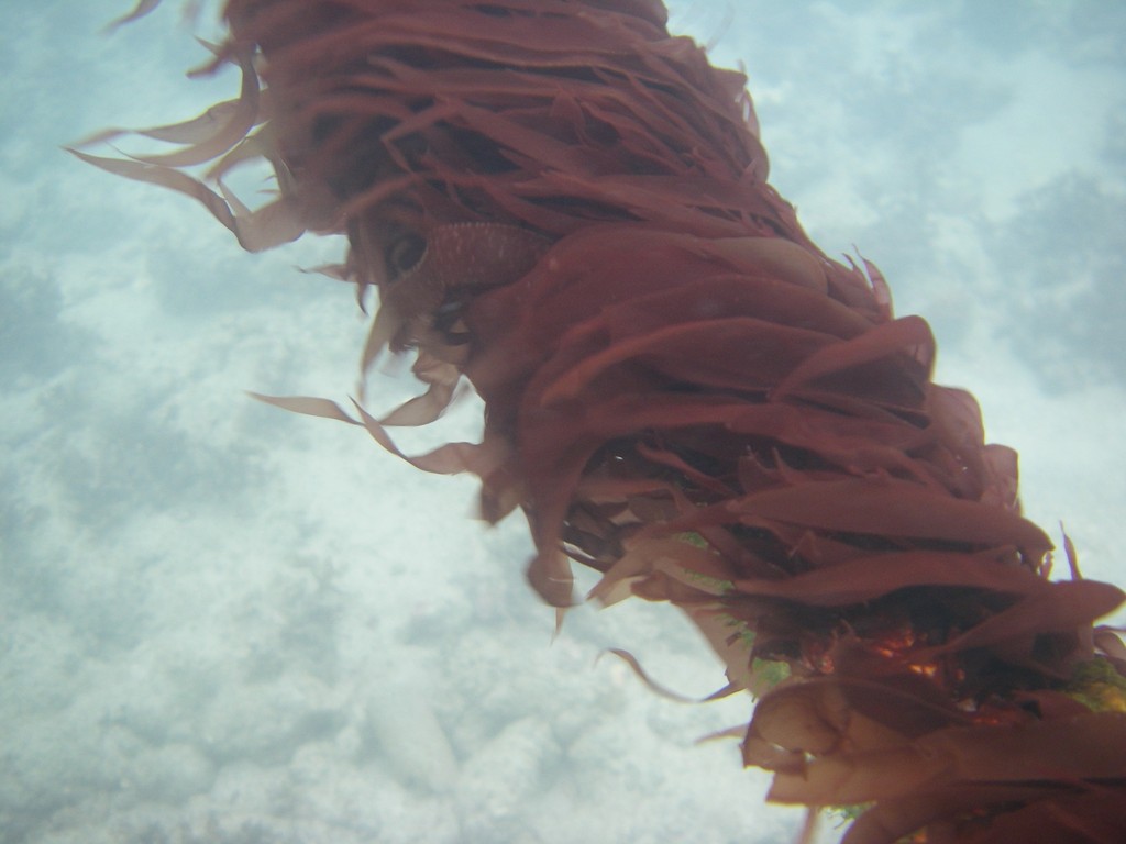 紅藻類稀毛蜈蚣藻(Grateloupia sparsa)為具有食用價值的高經濟性藻種,主要生長於低潮線附近卵石上,藻體大且可直立生活於海中,每年冬季至春季期間生長較為旺盛,在3至5月期間為海藻成熟期,由漁民浮潛採摘6-10公分長的蜈蚣藻(俗稱海帶麵)提供給海產店,經熱水殺青和真 空包裝以冷凍儲藏,全年皆可享受到涼拌海帶麵或海帶麵炒蛋等料理。
