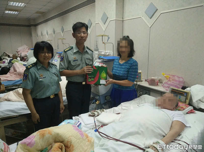 ▲台南市後備指揮部指揮官王之聖上校,在留守科科長羅雪綿中校陪同下,親赴台南市北區福民內科診所,探視傷殘官兵許先生,表達關懷。(圖/後指部提供)