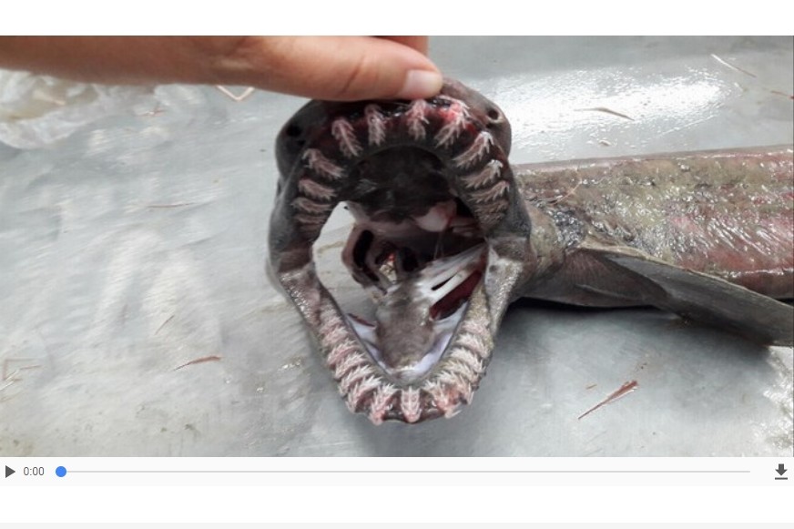 葡萄牙科學家日前在該國南邊的阿爾加維區(Algarve)岸邊抓到一隻「神秘古生物」,名為皺鰓鯊(frilled shark),形狀細細長長的長得像蛇,牠已經生活在地球上8000萬年,大部分都是住在深海裡,不常被發現,因此科學家對牠的了解也不多。