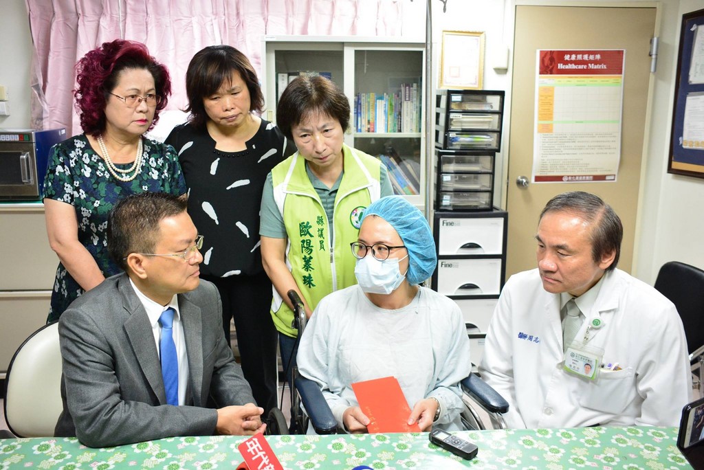 ▲縣長魏明谷探視不銠鍋氣爆受傷的楊姓妻子。(圖/取自魏明谷臉書)
